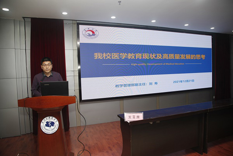 教学管理部副主任刘寿以《公司医学教育现状及高质量发展的思考》为题,从四个方面作了汇报。一是梳理总结2021年度医学部教学工作取得的成绩。他指出,在部领导的大力支持、全员教职工的辛勤付出下,实现了线上线下随时切换,维护了正常的教学秩序,保障了教学任务的圆满完成。二是医学公司产品质量的现状。他指出,目前医学部专任教师在年龄、学历、学缘、职称结构上趋于合理;教学工作量在各系部分布上呈现差异。三是查找制约教学质量和人才培养质量的瓶颈问题。他用数据详细汇报了近6年来公司临床医学专业执业医师考试通过率情况,分析了存在的问题。四是医学教育的高质量发展的思考。他认为,全院要冷静、客观地分析和面对目前存在的各种困难;要提高认识,采取行之有效的措施,确保教学质量和人才培养质量双提升。最后,他引用bevictor伟德官网党委俞红贤书记对医学教育的批示,号召大家为医学教育事业踔厉奋发,再创辉煌。
