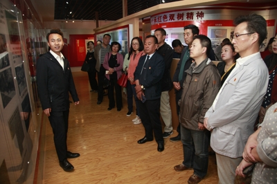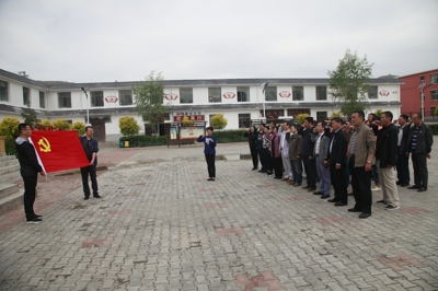 来到双树村党支部纪念展室广场,映入眼帘的是纪念展室门顶挂着写有“青海省农村第一个党支部”的红色匾牌。互助县委党史研究室祁文汝主任接待了我们,并就纪念展室的基本情况作了简要介绍。首先,参观纪念展室。纪念展室展板分为:前言、行政区划、星火燎原、峥嵘岁月、再添新篇、生产发展、生活宽裕、社会发展、乡风文明、结束语十个内容,中间插有60多副珍贵的历史图片。担任讲解的互助县委组织部组织科干部鲁多杰系统介绍了双树村党支部从诞生、艰苦斗争到发展壮大、走向新世纪的光辉历程。纪念展柜中陈列有10多本历任党支部书记的工作笔记、历届党支部书记使用过的办公器材、优秀共产党员的荣誉证书、当时的经济决算簿册、票单以及宣传双树党支部的相关报刊、杂志、文章、书籍等;在纪念展室展台或地下还有10多件记录着那段斗争岁月中的斑驳实物,渐渐布满时代风雨的历史实物,无声而又生动地记述者这个红色支部的风雨历程。尽管纪念展室布置简单,但它无疑是双树村党支部艰苦朴素的优良传统和作风的历史见证,也是诠释“追求进步、艰苦耐劳、永不停止、永远争先”双树精神的最佳平台。随后,观看了《一个村庄的红色记忆》专题片,片中详细介绍了双树村党支部的诞生、发展、壮大历程,村容村貌的改善、变迁,村民生活水平的不断提高。纪念展室已成为“开展红色传统教育,振奋土乡民族精神”的爱国主义教育基地、革命传统教育基地和党风廉政建设教育基地。最后,参加参观学习的全体党员在老党员代表、药学系党总支书记王津慧的领誓下,面对党旗庄严宣誓重温了入党誓词。