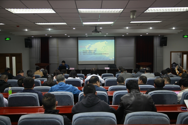 张晶作了题为《新宪法解读》专题辅导报告,他从宪法是国家的根本大法、我国现行宪法的特点和作用、习近平总书记对我国宪法建设的重要论述三个方面对宪法是怎样产生的、新中国的四部宪法、为什么宪法是国家的根本大法、我国的社会主义法制建设和习近平总书记依法治国理念等进行了详细阐述,报告图文并茂,例举详实,通俗易懂,使与会人员进一步了解了宪法的内容、效力和修改宪法的意义,为我们上了一堂生动的法制课。