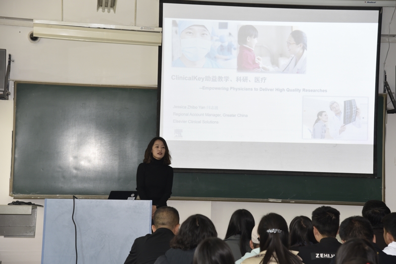 主讲人闫老师围绕“ClinicalKey全医学数据平台助益教学、科研、医疗”,分别从论文撰写与投稿心得、ClinicalKey在诊断与科研中的应用两方面出发,为基础医学部师生介绍数据库的使用方法。她指出,论文撰写过程需要大量搜索、查阅文献,如何选择数据库、如何正确使用数据库直接影响论文撰写速度及质量。闫老师还为师生全面介绍了ClinicalKey全医学平台的内容,并详细讲解如何快速掌握其使用方法。讲座中,闫老师还通过ClinicalKey全医学平台的操作为现场读者在线演示了平台的各项功能和使用过程中的小技巧。讲座结束后,闫老师还与学科人员进行了现场交流,耐心细致地解答了他们提出的问题。
