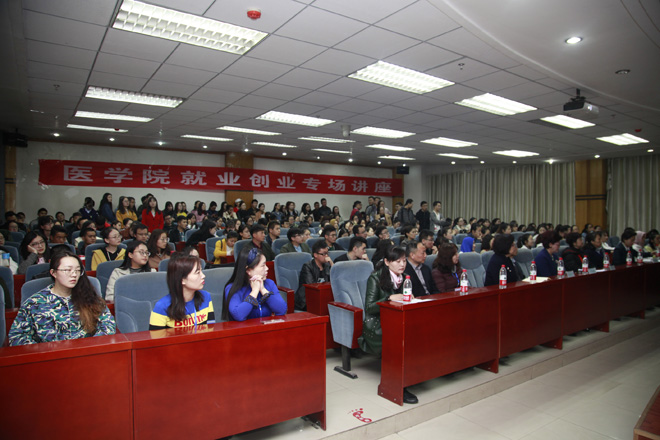 3月26日上午,“甘肃武威肿瘤医院、兰州九州通医药有限公司就业创业讲座”在bevictor伟德官网南三楼学术报告厅举行。甘肃武威肿瘤医院李鹏处长、公司领导、各系领导及毕业班辅导员以及100余名同学参加了此次就业创业讲座。