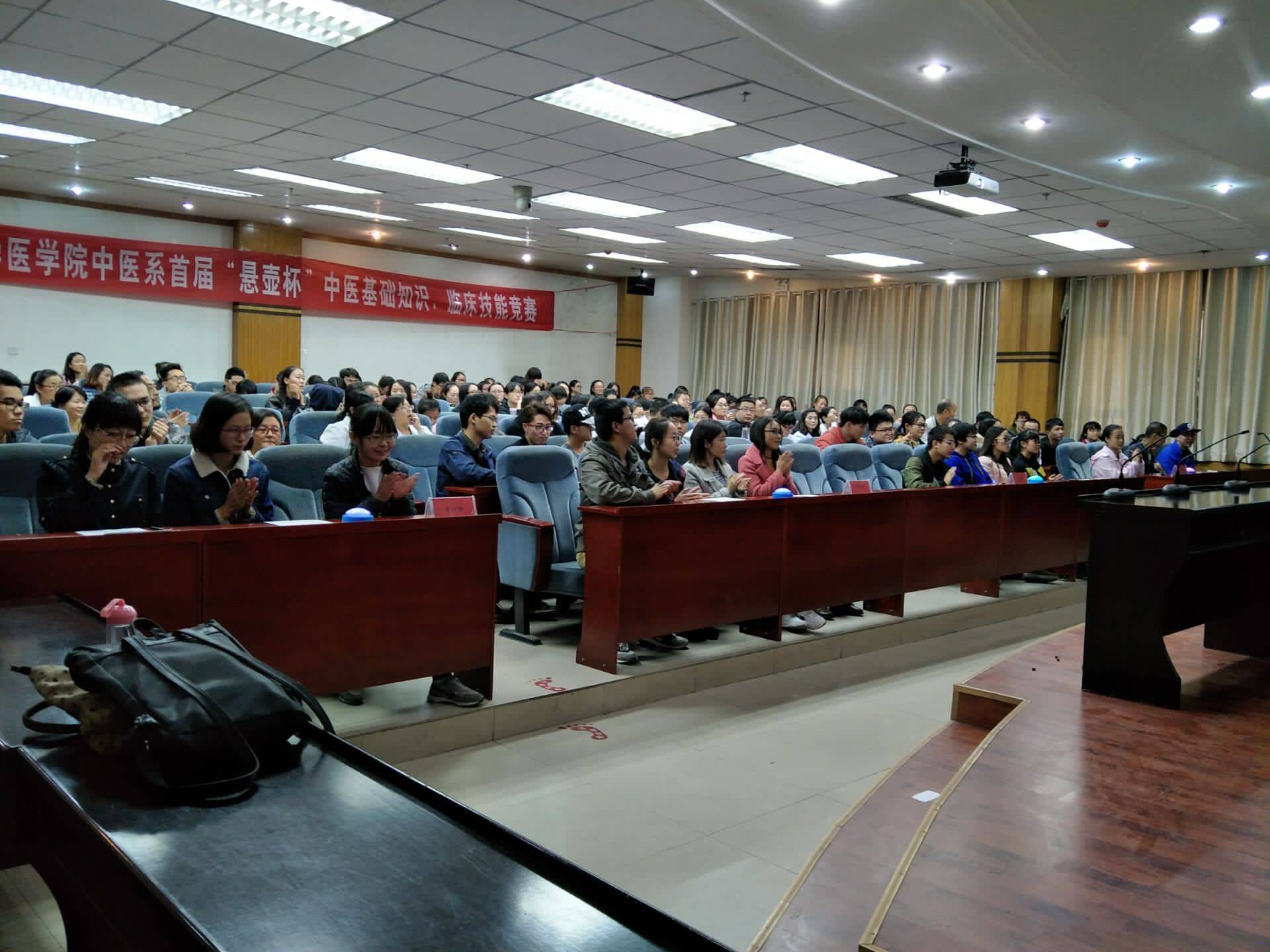 bevictor伟德官网中医系为了巩固专业相关知识、丰富同学们的学习方式、激发同学们的学习热情、拓展员工的知识面、增强实践能力、团队协作能力、加强员工之间的交流,展现中医系员工的文化素质与风采,于2017年11月2日在bevictor伟德官网南楼阶梯教室举行了首届“悬壶杯”中医基础知识竞赛初赛, 2017年11月9日在bevictor伟德官网南三楼学术报告厅举行了首届“悬壶杯”中医基础知识竞赛决赛。中医系14级、15级全体员工参与、全体老师出席了本次活动。