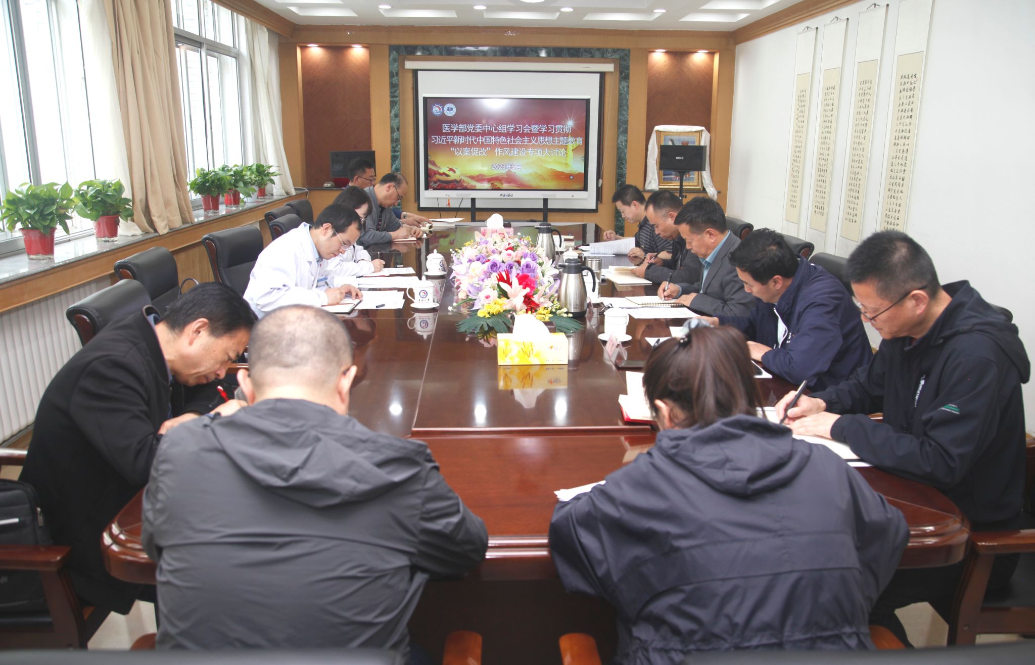 5月31日下午,医学部党委在北二楼大会议室举行了学习贯彻习近平新时代中国特色社会主义思想主题教育“以案促改”作风建设专项大讨论。校主题教育第一督导组成员唐楠、张洪梅、部党委班子成员、党委理论学习中心组成员、医学部主题教育领导小组办公室全体人员参加了会议。部党委副书记、常务副经理苏占海同志主持会议。
