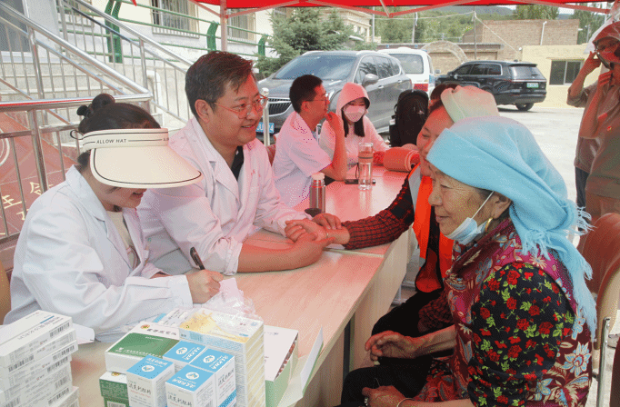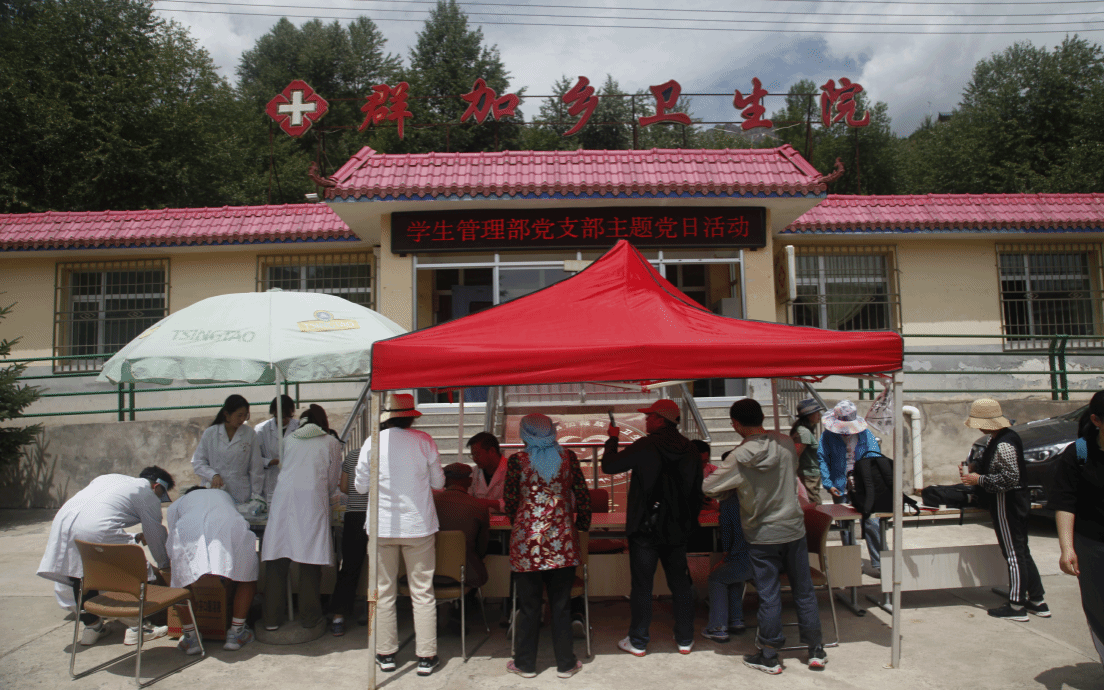 在药学系采认药实践基地湟中县群加乡卫生院,药学系党总支、员工管理部(团委)党支部组织党员、教师和部分员工先后开展了医疗专家义诊、发放药品、健康知识宣讲、师生采认药、重温入党誓词、普及普通话等系列活动。活动期间药学系教师索南邓登和附属医院中医科张长荣两位专家为前来就医的农牧民诊治疾病、进行健康咨询;参加义诊的员工们协助老师进行测量血压、血糖,并发放药品和健康宣传册,活动受到当地群众的热烈欢迎,前来诊治疾病人员络绎不绝。专家们先后诊治病人和健康宣教150余人次,免费发放30余种药品。药学系党总支和员工管理部党支部的全体党员在活动期间重温了入党誓词,强化了党员的党性锻炼。采认药期间,教师杨仕兵、胥生荣、拉太加、孙胜男、陈湘宏为员工们讲解药用植物,指导员工制作植物标本,使员工们在理论学习的基础上进一步拓展了知识视野,增强了实践能力。