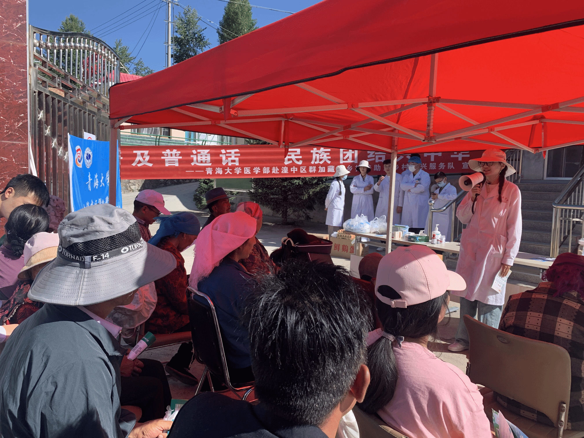 7月9日,服务队聚焦普通话应用能力较低的留守妇女、老人和儿童开展普通话能力提升专项培训,将普通话培训与农村发展旅游业、村民就医、医疗卫生常识等相结合。鱼雷和李宝慧同学以“推广普通话 顺畅你我他”为主题,向村民展示了不使用普通话造成的不便案例,并普及普通话的基本知识和正确发音方法,同时鼓励大家多用普通话进行日常交流,使村民们感受到学习普通话的必要性,使普通话教育更加生动化、形象化与具体化。临床医学专业员工窦总芳、彭毛卓玛充分发挥所学医学知识,分别介绍了当地村民高发病风湿性关节炎、高血压和糖尿病的预防和治疗用药常识,并向当地居民讲解健康膳食营养指南,提高村民对常见慢性病以及地方病风湿病的认识,帮助他们采取正确的预防和管理措施。