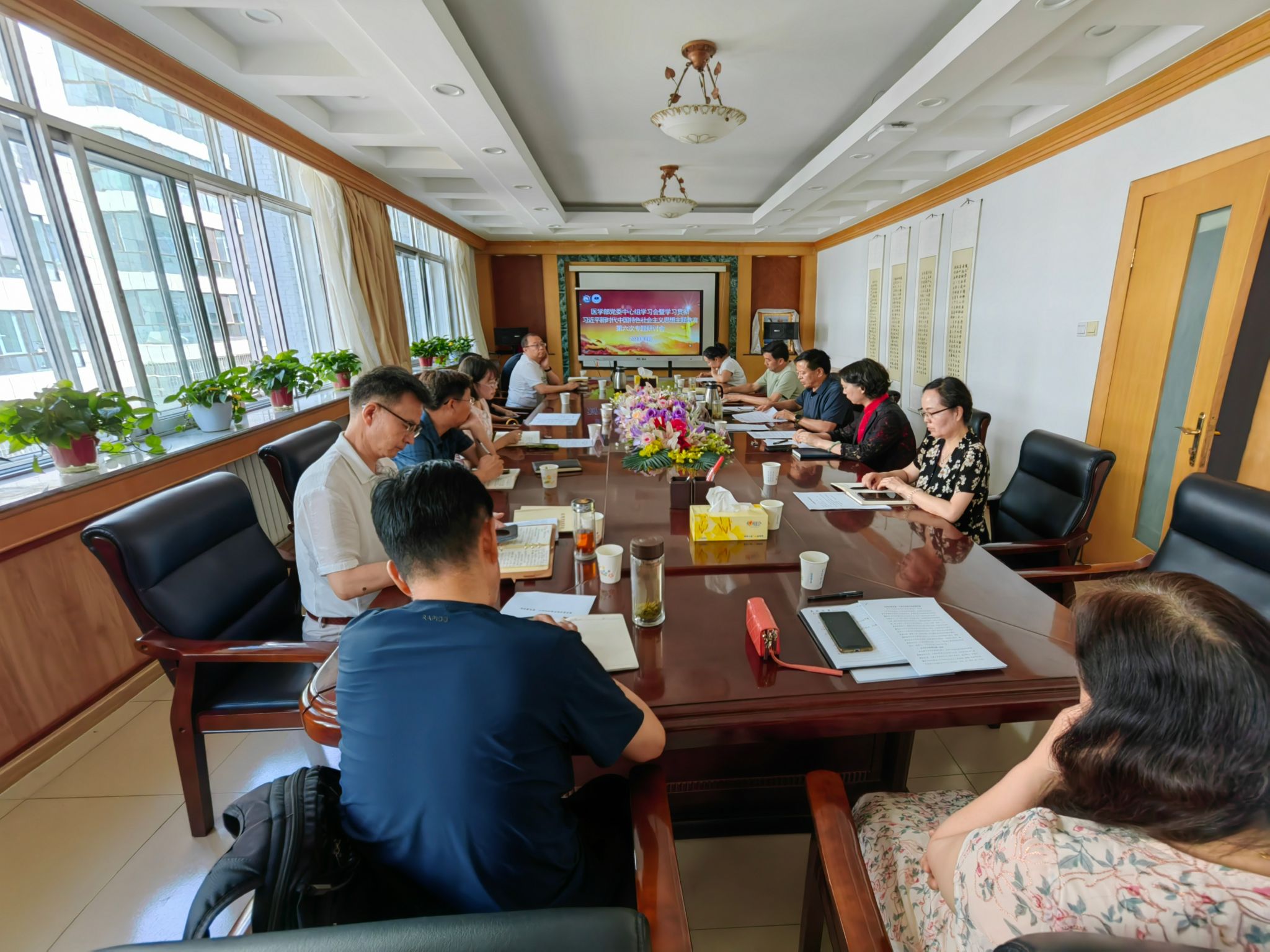 8月2日下午,医学部召开党委理论学习中心组学习会暨学习贯彻习近平新时代中国特色社会主义思想主题教育第六次专题研讨会,会议由医学部党委副书记周全厚主持,校主题教育第一督导组成员张洪梅、医学部党委理论学习中心组成员、部主题教育领导小组办公室成员参加会议。