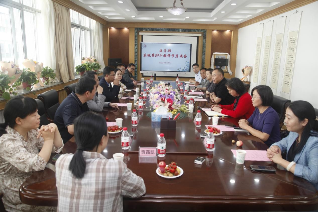 金秋九月,秋风送爽,为热烈庆祝第39个教师节,医学部于9月9日下午举行“躬耕教坛,强国有我”为主题的教师座谈会,邀请各系部(中心)、附属医院、教学医院及退休教师代表参会,共话医学教育发展。医学部领导、教学管理部负责人出席座谈会,会议由医学部党委副书记、常务副经理苏占海主持。