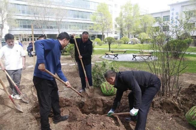 上午9点,在植树现场,大家或两人一组或三五成群,各司其职、干劲十足,合力栽下了一株株树苗,最后再用脚将土踩实。到处都是忙碌的身影和劳动的欢声笑语。经过一上午的辛勤劳动,20余株祁连圆柏、高枝月季、干柴牡丹、桃树等树苗在校园里“安家落户”,把校园装点得生机盎然,为医学部增添了一道靓丽的风景线。