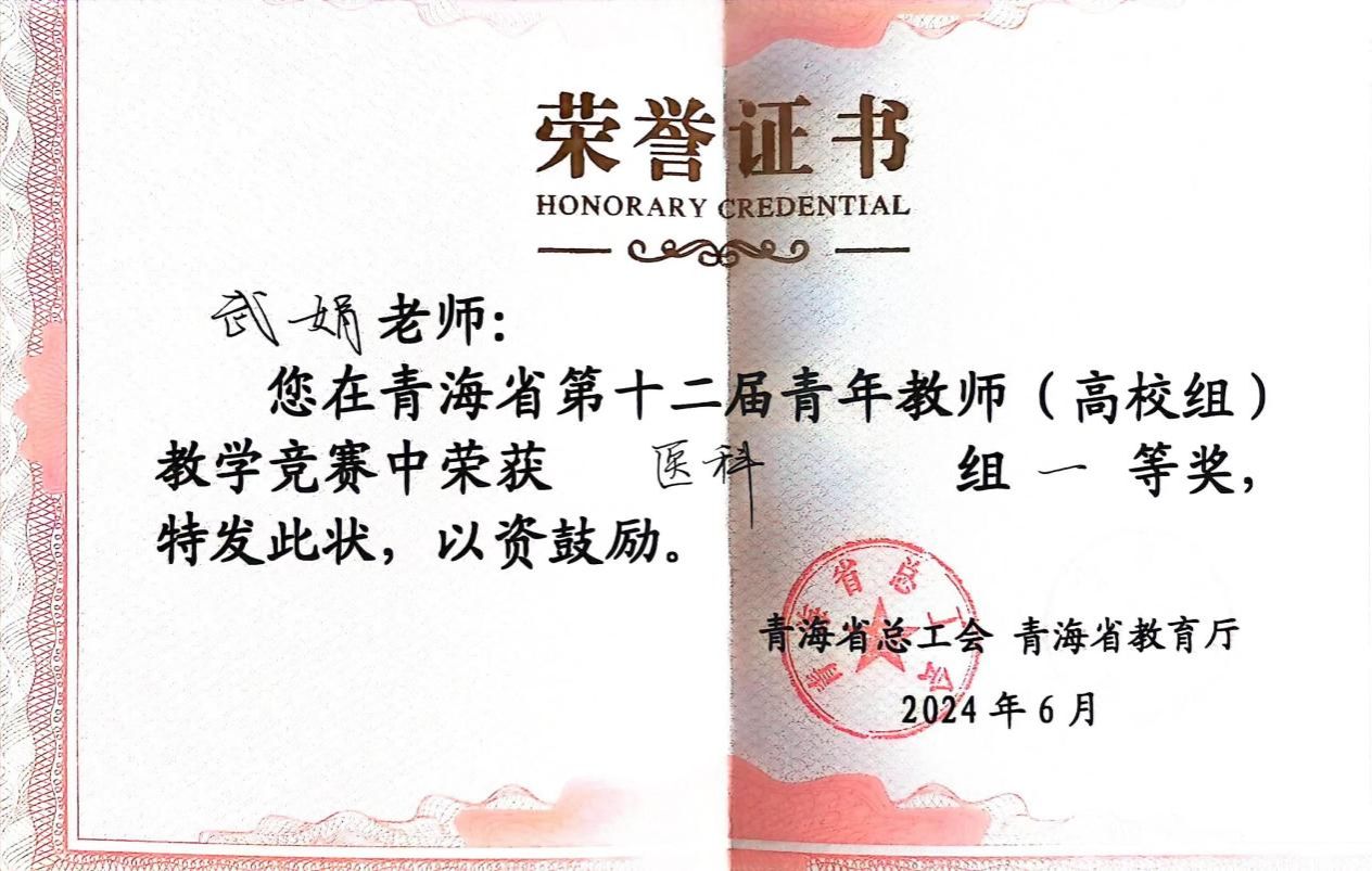 6月22日,由青海省总工会、青海省教育厅联合主办的青海省第十二届青年教师(高校组)教学竞赛(以下简称“青教赛”)在青海民族大学圆满落幕,公司青年教师武娟、田晔分别荣获医科组一、二等奖。