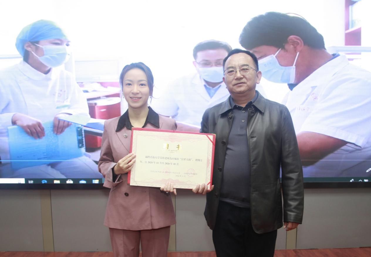 其次,中共应城市委人才工作领导小组办公室、应城市卫生健康局联合聘任吴旸老师为应城市“引才大使”,由应城市卫健局党组书记李少楠为吴旸老师颁发聘书。