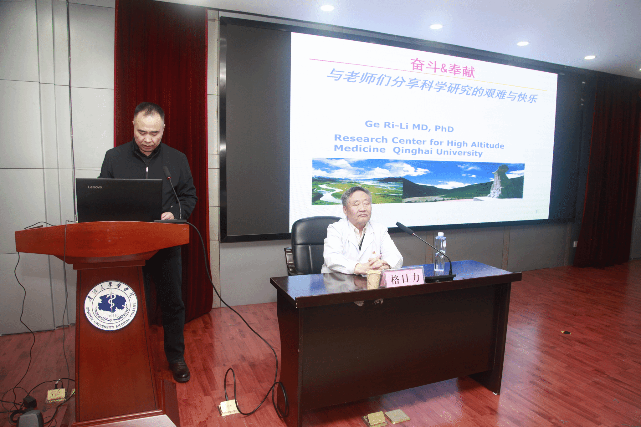 格日力教授紧扣“科学家精神”,讲述自己由一名放羊娃成长成才为我省高原医学领域著名的科学家,生动阐释了作为一名优秀的教师、科学家,必须要有志存高远、立志报国的理想信念,以及对党、高原人民、高原医学的深厚情感。
