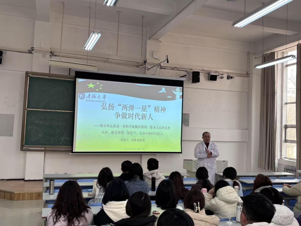 他通过青海原子城纪念馆的案例,展示了“两弹一星”精神在传承中的重要作用,并分享了其在青海现代化实践中的具体应用,如新能源和生态旅游等领域的发展。他还介绍了青海“四地”建设规划,包括世界级盐湖产业基地、国家清洁能源产业高地、国际生态旅游目的地和绿色有机农畜产品输出地,指出这些规划体现了“两弹一星”精神的指导意义。高主任强调,研究生作为科研的新生力量,应深入学习“两弹一星”精神,将其内化于心、外化于行。他鼓励同学们应以老一辈科学家为榜样,胸怀祖国、服务人民,将个人理想与国家发展紧密结合,在科研道路上勇于创新、敢于担当,努力成为有理想、有本领、有担当的时代新人。
