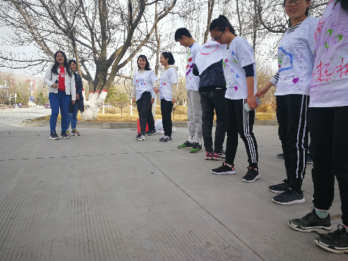 活动在开始时,工作人员为参赛选手分发白色短袖,宣布活动开始,各参赛选手别出心裁,在白色短袖上进行涂鸦。在跑步过程中,参赛选手们激烈角逐,通过了工作人员设置的跳绳、踢毽子、吹气球等游戏关卡,最终,周玉林、贺得玺、吕仙芬等同学获得抽奖机会,得到了精美奖品。