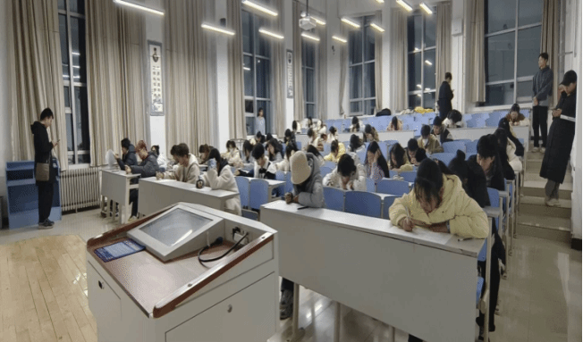 本次活动于11月30日晚上7点在基础医学部阶三教室举办。通过线下考试的形式展开。教室内,同学们正在专注的答题,前后有员工会的工作人员负责监考。本次竞赛共有133位同学参加,竞赛时间为60分钟,题型有单项选择题、多项选择题、填空题、判断题和简答题。本次知识竞赛为推动宪法教育的普及:宪法是国家的根本大法,对公民的权益和义务进行了规定,但往往在日常生活中被忽视。通过竞赛活动,可以强化宪法教育的普及性,并让更多的人了解和学习宪法内容,提高法律意识和法治观念。