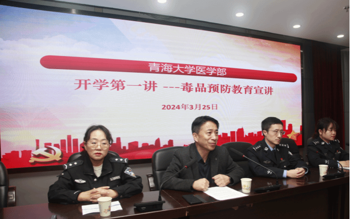 本次讲座由医学部副书记李建华致开场词,他强调了当前电信诈骗、毒品和邪教问题的严重性,以及加强防范意识的重要性。接着,来自城西区派出所的警官、员工管理部老师和医学部保卫科的工作人员,以及各院系员工参加了此次宣讲活动。