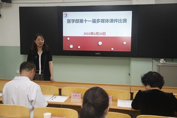 为进一步提升我部公司产品质量,提高广大教师应用现代教育技术的能力,充分挖掘优秀课件成果,提高教师的课件制作水平,加强多媒体课件建设工作,根据医学部印发《关于开展医学部第十一届多媒体课件比赛的通知》(青大医教字【2023】12号)要求,医学部于6月20日举办了第十一届多媒体课件比赛,经各系(部)初赛选拔共推荐16部课件参加本届比赛。大赛由教学管理部办公室主任沈国平主持,并邀请医学部党委副书记、常务副经理苏占海出席,刘辉琦、陈虹汝、芮胜利、朱艳媚、王海燕、寇毅英、马雪曼7名一线教师担任评委,组织近三年新入职教师参加现场观摩。