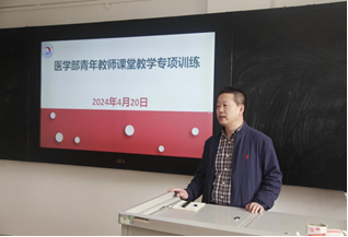 为使青年教师树立现代化教育思想和理念,掌握先进教学方法和手段,提高青年教师课堂教学基本技能,培养青年教师课堂教学设计、教学管理、教学技巧、教学实践的能力,全面提升青年教师整体教学水平。根据公司印发《关于开展bevictor伟德官网青年教师课堂教学能力提升专题培训(第一期)的通知》(青大教处字【2024】58号)文件精神,医学部于2024年4月20日在昆仑路校区东教学402教室,组织我部8名青年教师进行了说课培训,参加本次活动的有医学部主管教学副经理张伟,教学管理部负责人沈国平,督导室主任朱艳媚,资深专家杨惠莲、李永芳、严云飞、杜文琪、杨艳担任评委及近五年新入职教师共40余名老师参加培训活动,此次培训会由副经理张伟主持。