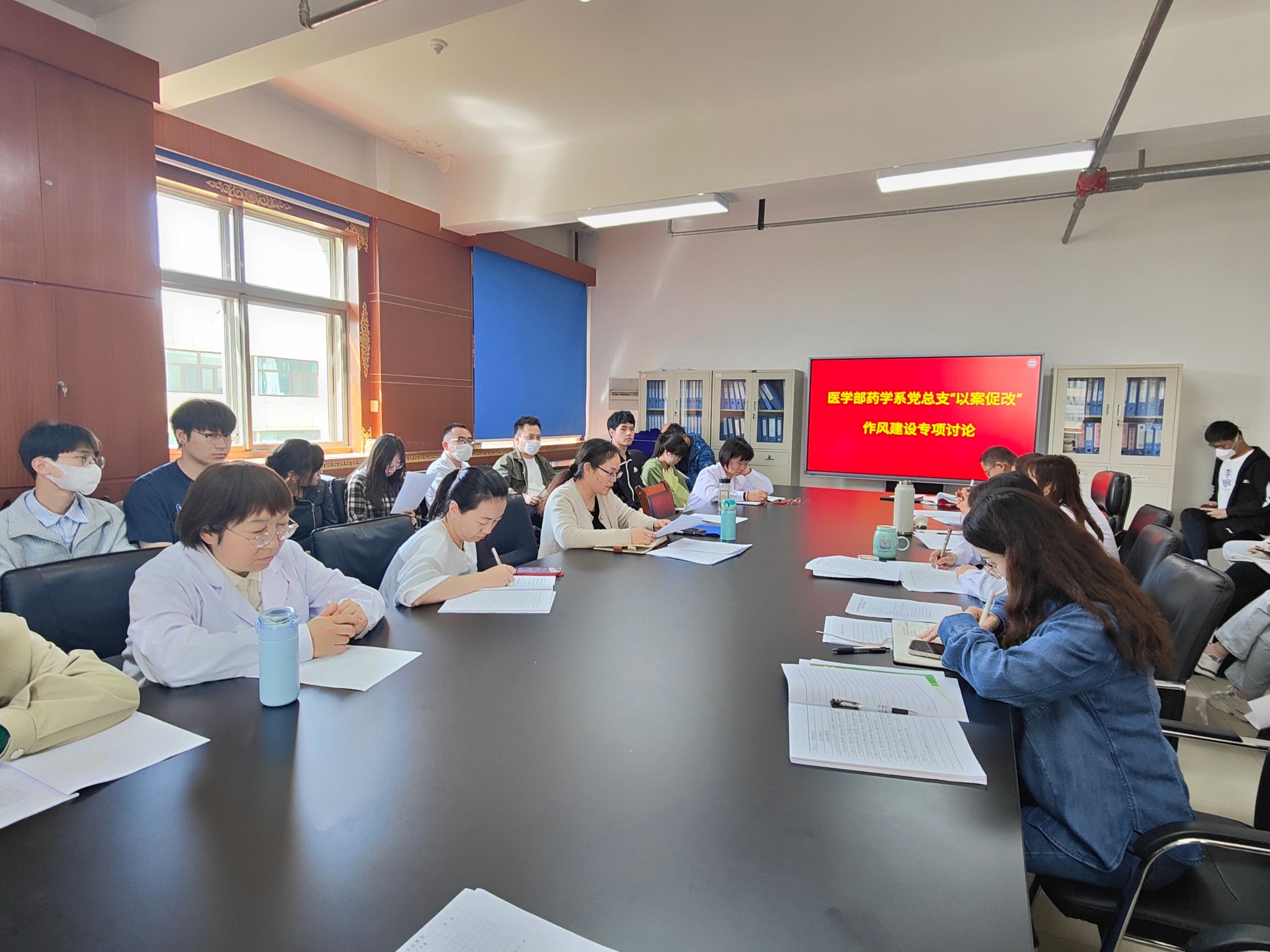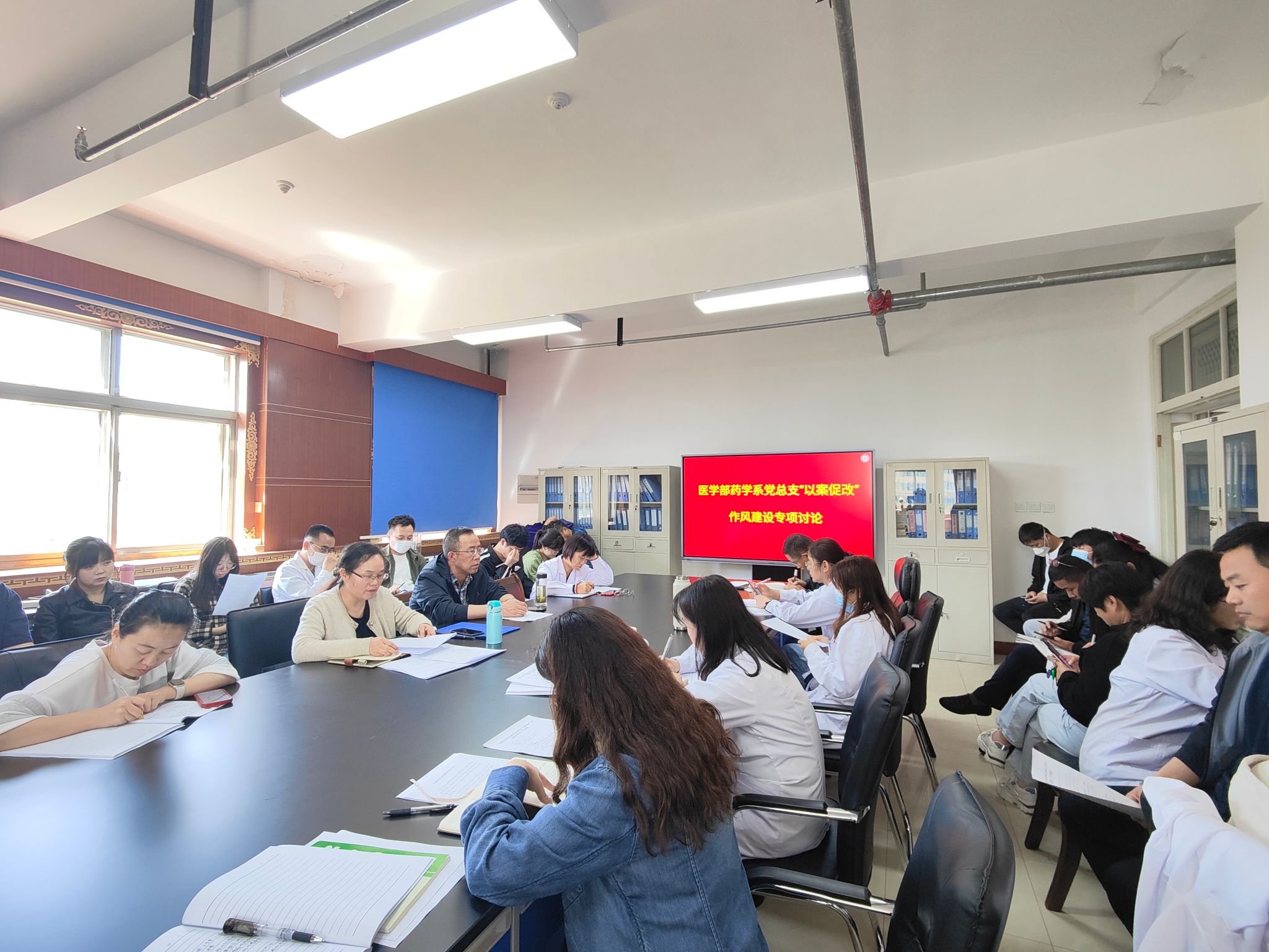 6月7日下午,药学系党总支组织全系教师党员、员工党员及系部教师召开了药学系党总支“以案促改”作风建设专项大讨论。会议由药学系党总支书记齐瑞平主持。