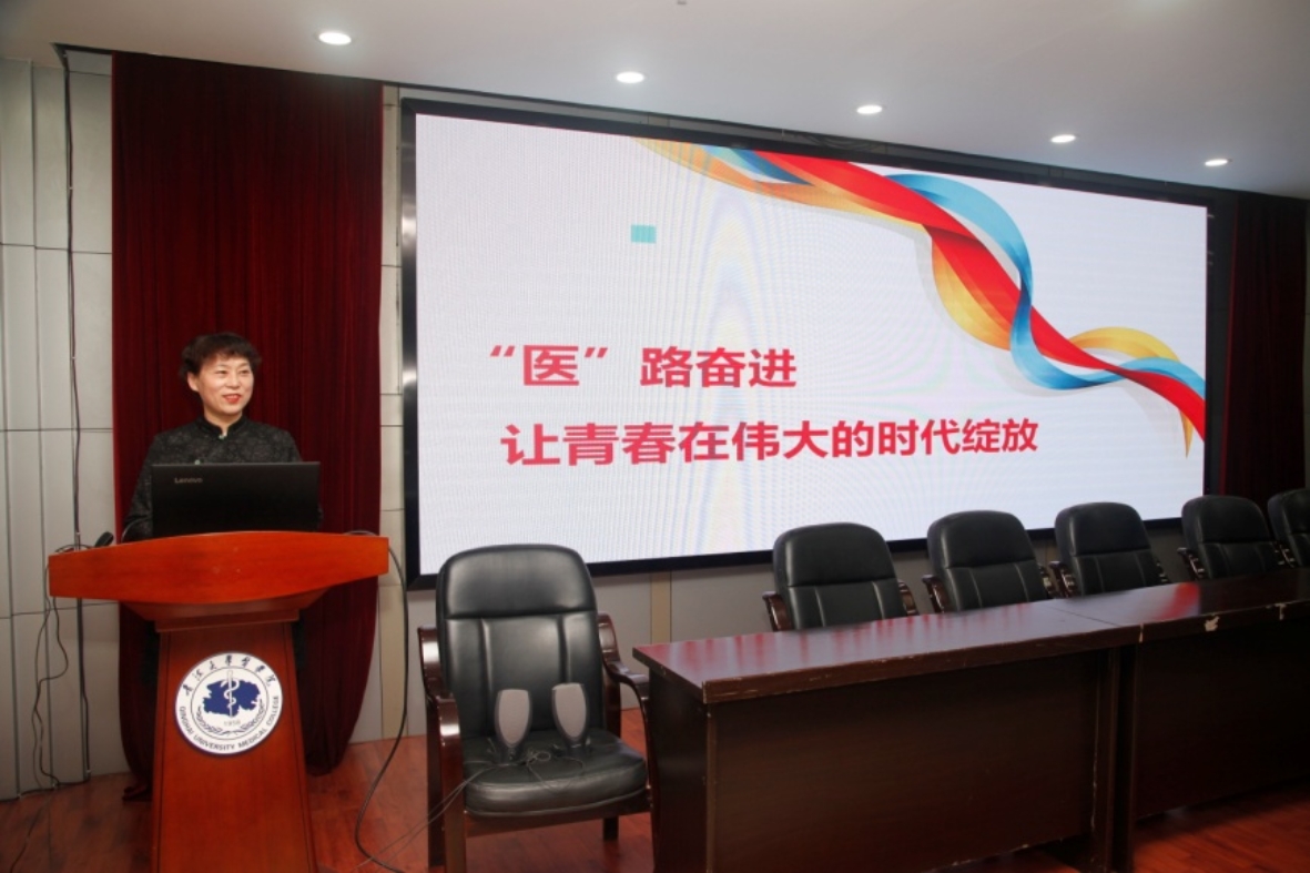 童经理以“‘医’路奋进,让青春在伟大的时代绽放”为题讲授开学第一课。她围绕“学习贯彻二十大精神,增强做中国人的志气骨气底气”“践行健康生活,做自己健康第一责任人”“揭秘研途密码,汲取榜样成长力量”“提升创新能力,勇担时代医学青年重任”四个话题展开交流。