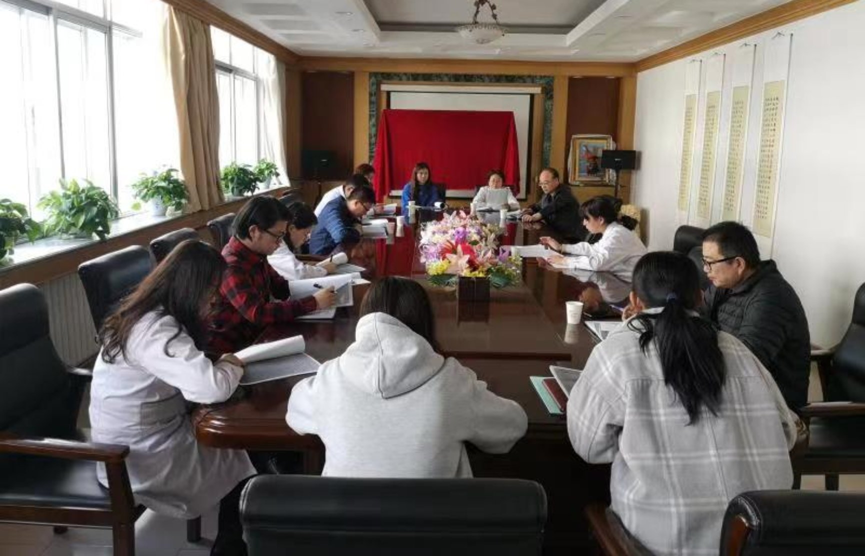 研究生管理办公室吴岳主任就各学位点领导工作小组成立要求、秘钥使用、复试方案内容等工作做了细节部署。会后,各学位点参加大学研究生院组织的复试平台现场培训、参加了李丽荣常务副董事长主持召开的调剂工作会议。各学位点将认真落实大学各项工作部署,周密安排,履职尽责,做好2021年研究生招生复试工作。