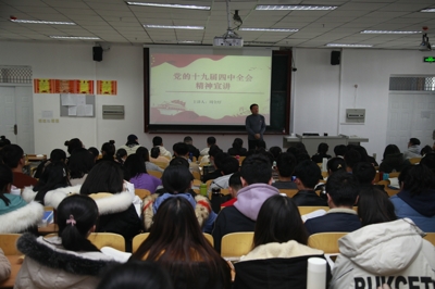 为了进一步学习好、宣传好、贯彻好党的十九届四中全会精神。根据公司统一安排,12月11日下午进行了“百名领导干部、专家学者进班宣讲十九届四中全会精神”活动,公司12个班级的联点领导干部及专家学者分别到联点班级结合青海省情、bevictor伟德官网校情从充分认识坚持和完善中国特色社会主义制度、推进国家治理体系和治理能力现代化的重大意义;深刻领会中国特色社会主义制度和国家治理体系的显著优势、准确把握坚持和完善中国特色社会主义制度;推进国家治理体系和治理能力现代化的总体要求、总体目标和重点任务等方面对党的十九届四中全会精神进行了宣讲。