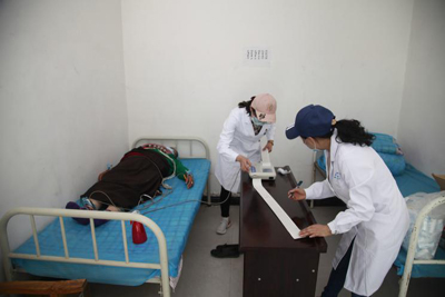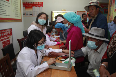 随后,公卫系党总支的党员为村民进行了卫生保健知识宣讲,指导村民掌握科学的卫生防疫常识;中医系党总支的党员为村民们进行了疾病诊治、健康咨询、发放药品等;后勤党总支的党员进户调查自来水水质、水压、自来水管铺设的情况,去幼儿园查看暖气铺设情况;高原中心、药学系、基础部党总支的党员在格日力教授带领下为村民诊治疾病、做心电图、测量血压等;与此同时机关党支部、教学管理党支部、员工团委党支部、成教党总支、临床系党总支的党员们分别深入帮扶户家中慰问,送去了米、面、油等慰问品,了解他们生产、生活情况。恰逢拉扎村图书阅览室成立,周全厚副书记和格日力教授为图书阅览室进行了揭牌,师生党员参观了阅览室。
